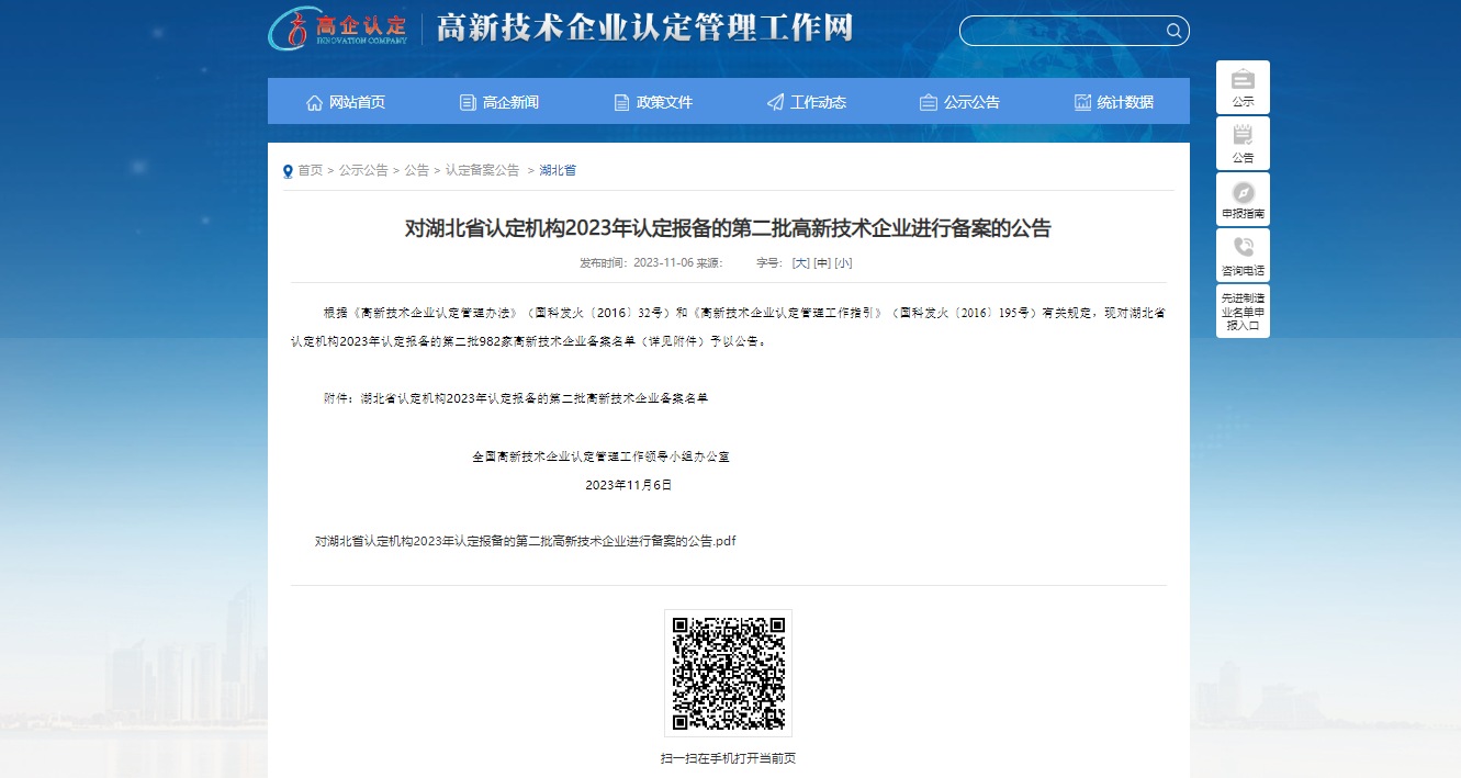 在這個(gè)科技日新月異的時(shí)代,創(chuàng)新已經(jīng)成為推動(dòng)社會(huì)進(jìn)步的重要?jiǎng)恿Α=眨鶕?jù)《高新技術(shù)企業(yè)認(rèn)定管理辦法》(國(guó)科發(fā)火〔2016〕32號(hào))和《高新技術(shù)企業(yè)認(rèn)定管理工作指引》(國(guó)科發(fā)火〔2016〕195號(hào))有關(guān)規(guī)定,對(duì)湖北省認(rèn)定機(jī)構(gòu)2023年認(rèn)定報(bào)備的第二批982家高新技術(shù)企業(yè)備案名單(詳見(jiàn)附件)予以公告。新銳科創(chuàng)(湖北)科技有限公司喜獲佳音,成功通過(guò)2023年高新技術(shù)企業(yè)備案。